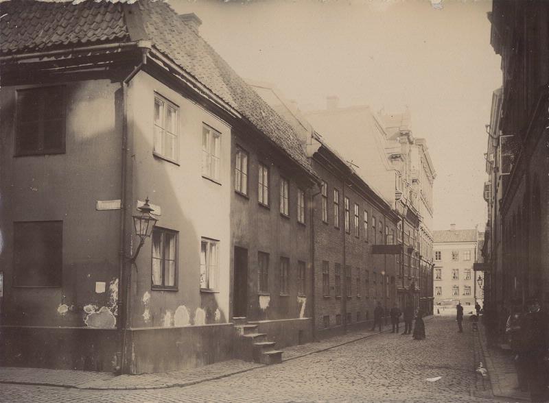 Klädprässaregatan åt öster, från hörnet af Torggatan. I fonden Östra Hamngatan 1888.