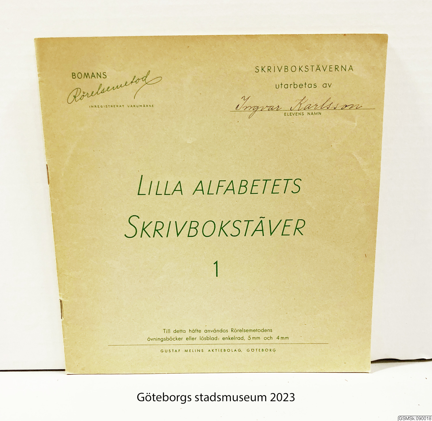 - övningsbok för inlärning av bokstäverna. Består av mallar som barnen själva skriver av, "till detta häfte användas Rörelsemetodens övningsböcker eller lösblad: enkelrad, 5 mm och 4 mm."