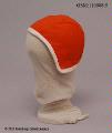 5: Hätta i röd syntetfilt, fodrad med röd bomull och kantad med vit trikå.