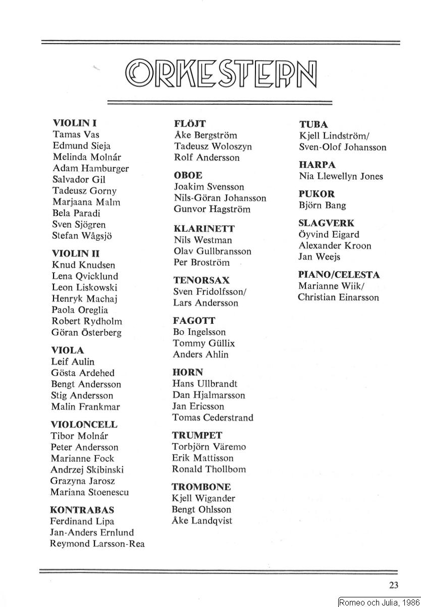 Anderstam, Lars; Aycan, Ersin; Carter, Bruno; Chalupa, Jana; Clery, Nancy; D'Aguiar, Gregory; Dahlgren, Clas; Duell, Karin; Ek, Jerker; Engbäck, Linda; Felfe, Jean; Fritz-Petersen, Helle; Gyllengran, Vilgot; Göransson, Carin; Havlik, Vaclav; Howard, Ivor; Höglund, Kerstin; Inger, Carl; Irgard, Thomas; Jildin, Magnus; Jones, Eileen; Jönsson, Ingvar; Krosness, Jesper; Levin, Joakim; Mirzabekiantz, Eliane; Mouwad, Roger; Nilsson, Lilibet; Nordqvist, Johann; Parsons, Gilbert; Rosen, Astrid von, 1964-; Samuelsson, Sofie; Simsek, Hilmi; Stenström, Charlotta; Stora Teaterns balett; Stora Teaterns orkester; Svennerfors, Johan; Sörling, Patrik; Wallgren, Eva; Wallmo, Katarina; Zlamal, Tadeusz; Åkesson, Evalotta