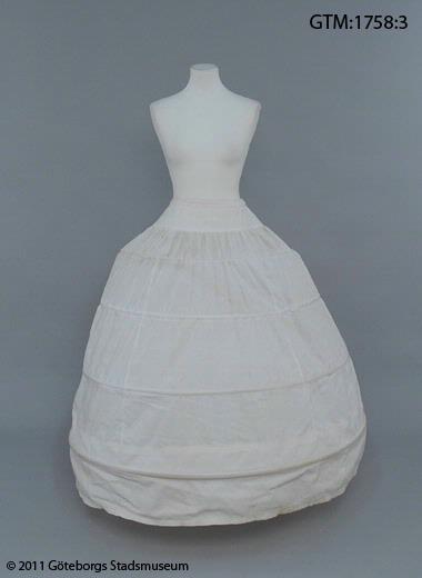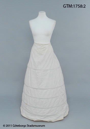 "3 underkjolar. Underkjolar för tunnband 3 st 108 cm långa, sydda av lakansväv (gammal) med plats för 5 tunnband.