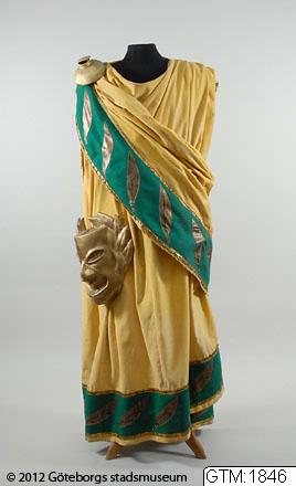 "Toga. Gult bomullstyg med bård i grönt och guld." /ur katalogkort lzg 2011-10-25