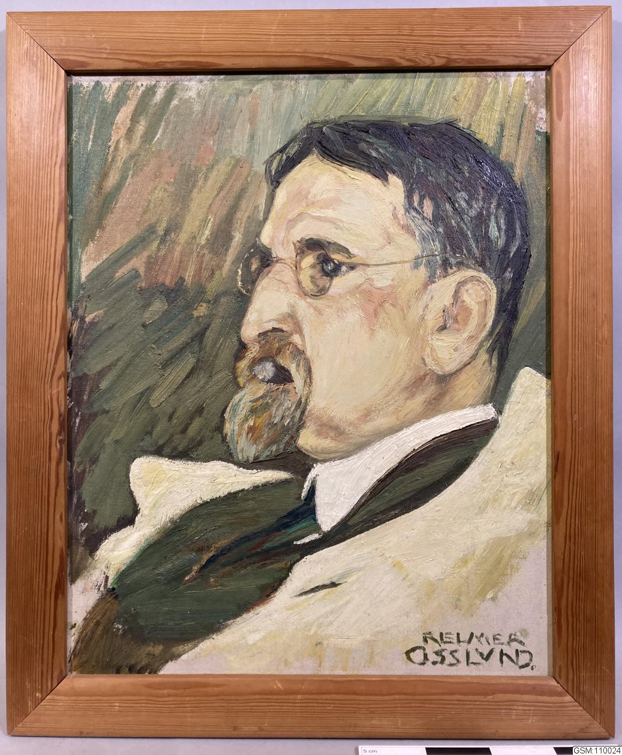 - Porträtt föreställande professor Leonard Axel Jägerskiöld, chef för naturhistoriska avdelningen vid Göteborgs Museum, sedermera chef för Göteborgs Naturhistoriska museum.