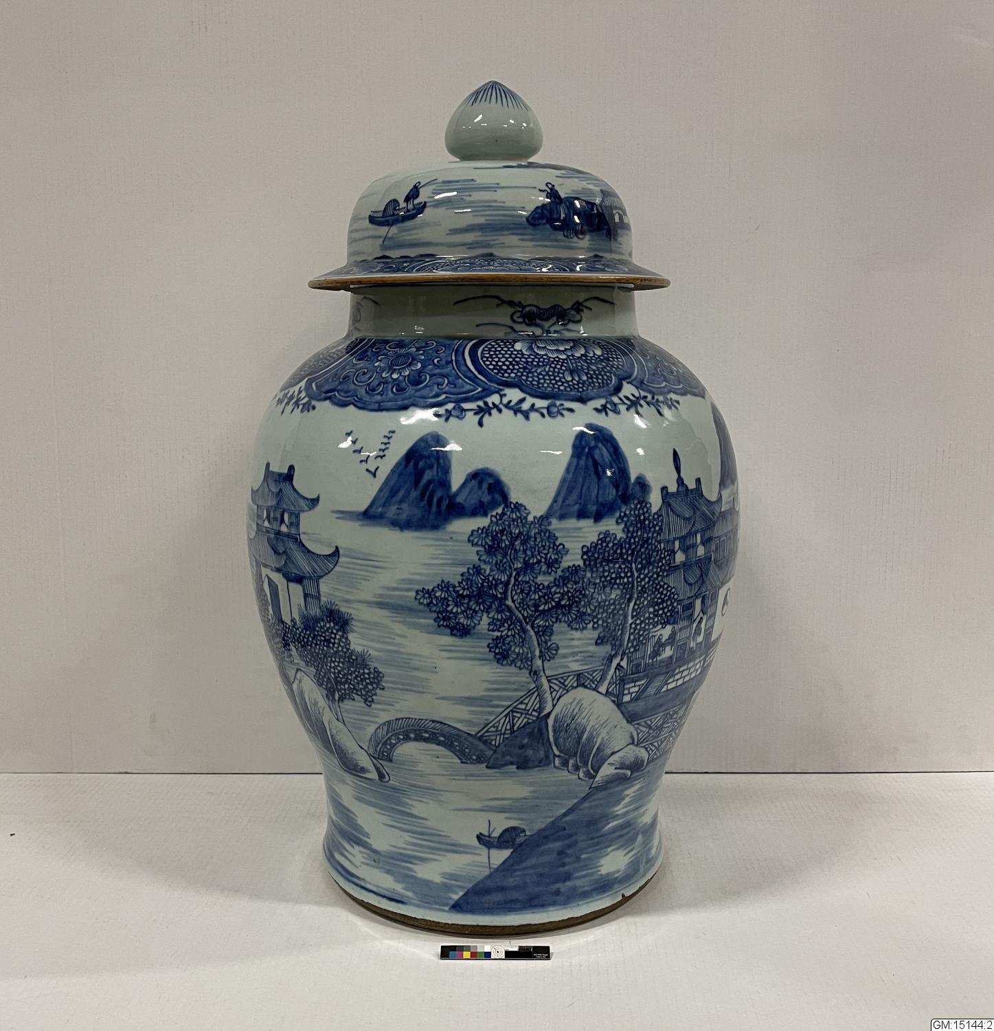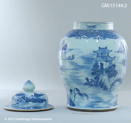 lockurna i blåvitt kompaniporslin från Chien-Lungperioden 1736-1795.