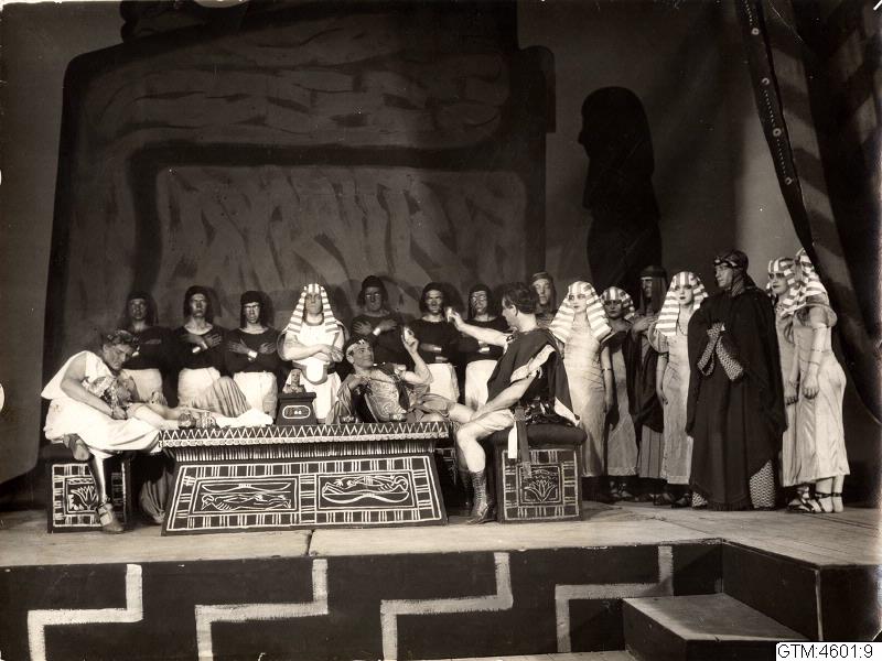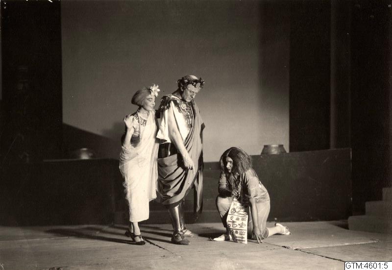 Cæsar [Sandborg, Olof]; Caesar [Sandborg, Olof]; Cleopatra [Bosse, Harriet]; Ptolemäus [Rothgardt, Wanda]; Rufio [Friedmann, Semmy]; Britannus [Öberg, Frans Oskar]; Pothinus [Lindahl, Albin]; Theodotus [Berndtsson, Wilhelm]; Achillus [Sjöstrand, Arnold]; Ftatatecta [Sjöblom, Tekla]; Apollodorus [Adolphson, Edvin]; Belzanor [Bengtsson, Bengt-Åke]; Bel Affris [Miliander, Sven]; livvakt [Ohberg, Åke]; Lucius Septimus [Ohberg, Åke]; Charmian [Lindahl, Anna-Lisa]; Iras [Sjöstrand, Barbro]; harpspelerska [Sjöstrand, Barbro]; musikant [Berndtsson, Wilhelm]