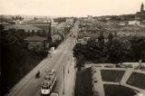 - Sträckningsbild av Karl Johansgatan mot öster, i höjd med Karl Johanskyrkan. Fotografen har stått på balkong/i fönster Allmänna vägen 52. Längs Karl Johansgatan norra sida syns nr 32 den tidigare prästbostaden för Karl johans församling, i bildens mitt Bryggeriet Kronan. Ute vid älven anas Amerikaskjulet. I bildens övre högra hörn ligger Masthuggskyrkan. I nedre högra hörnet ser man John E Olsons plats (före detta Bataljonsparken och Lek- och Viloplatsen). I parkens övre kant syns Eric Grates Bergslagurna, ett av 10 exemplar från 1921-1922. Ett exemplar finns på Göteborgs konstmuseum.