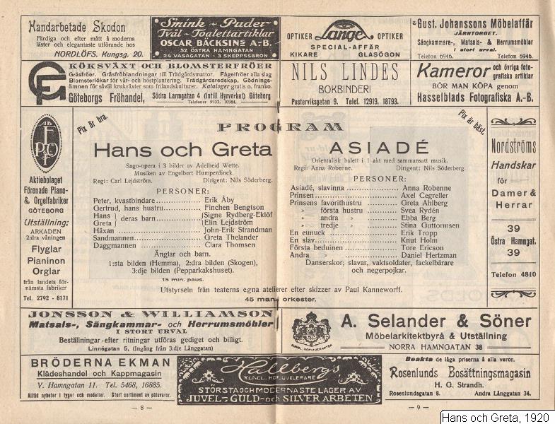 - dubbelföreställning: Hans och Greta /15 min paus/ Asiadé.