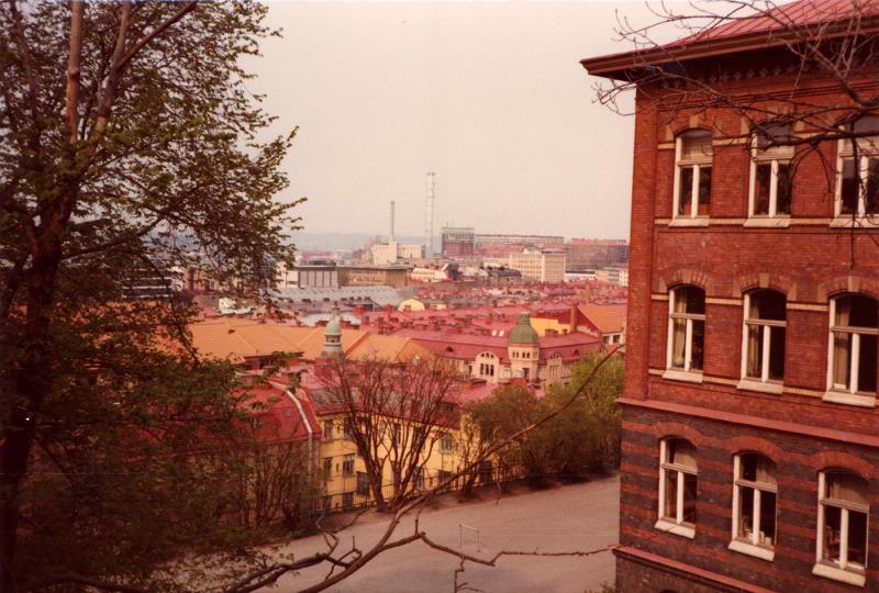 Vy från Masthuggsbergen över Oscar Fredrikssolans gård och Klamparegatan mot Otterhällan.