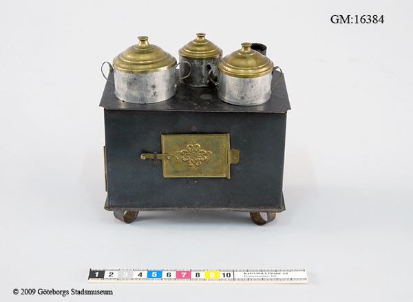 - Dockmöblemang bestående av två skåp, en chiffonjer, en byrå, en buffé, ett matsalsbord med två lösa skivor, ett ovalt dito, ett sybord med inredning samt ett blomsterbord. Vidare en spinnrock samt en spis med tre kastruller och en kaffekittel mm. (från liggaren)