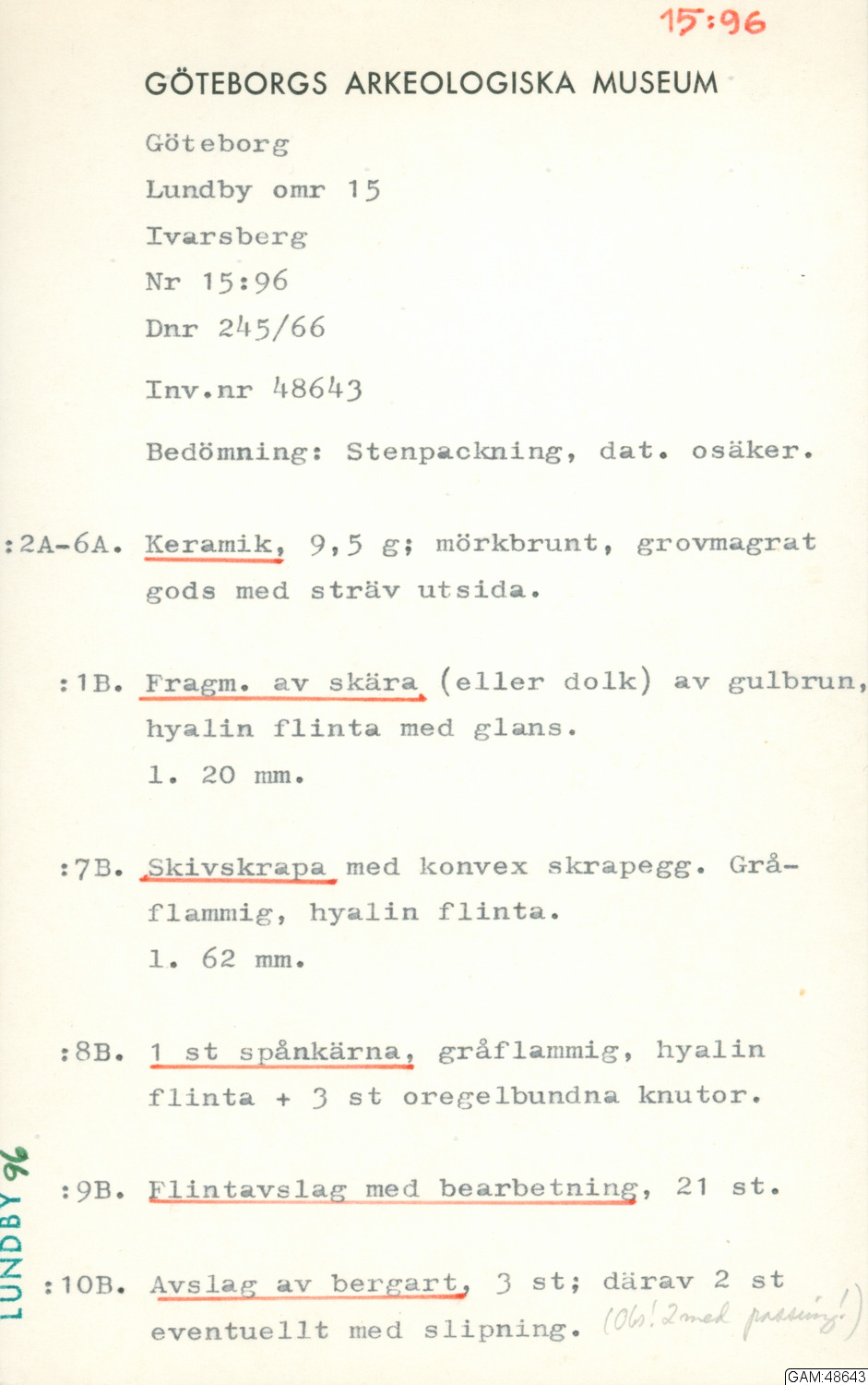GAM:48643 :: utgrävningar, utgrävning, slutundersökning [fältark]