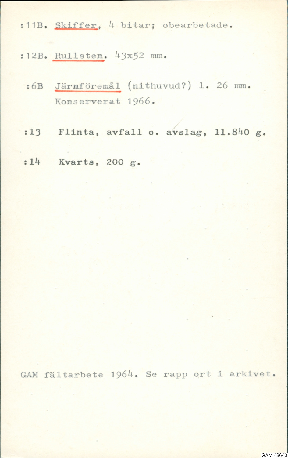 Arkeologisk rapport 1964:14