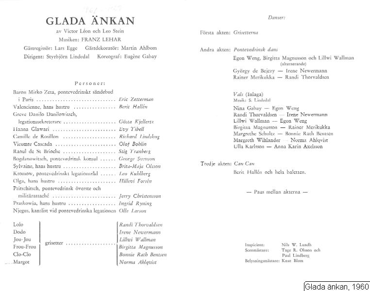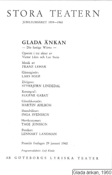 Glada änkan, 1960, Den glada änkan, 1960 :: föreställning
