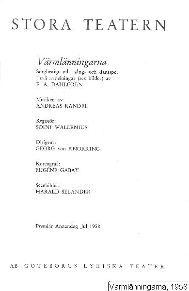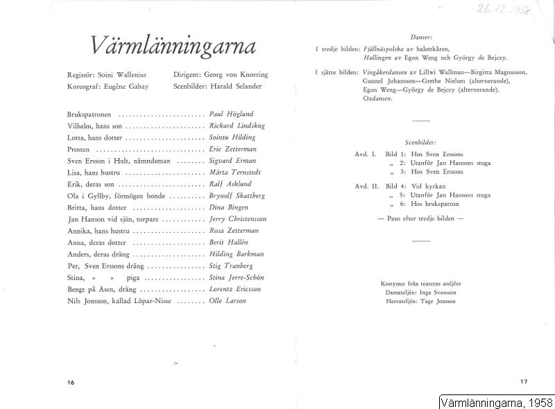 Jonsson, Tage, kostymör [kostym (herr)]; Selander, Harald [scenografi]; Svensson, Inga, formgivare [kostym (dam)]