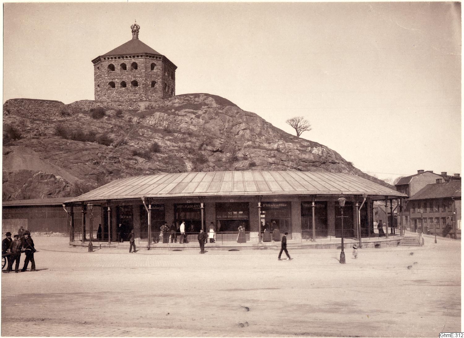 Saluhallen kallades omväxlande Spottkoppen, Snushallen, revs 1941. Husen t.h. är Bergsgatan