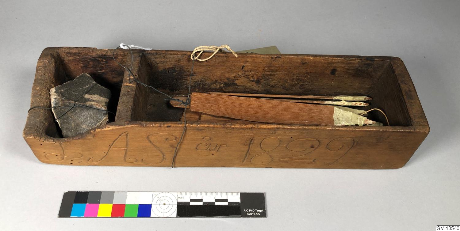 GM katalogkort 186. 19A. Eldgörning och värme. Eldstål, sköraskar, brännglas