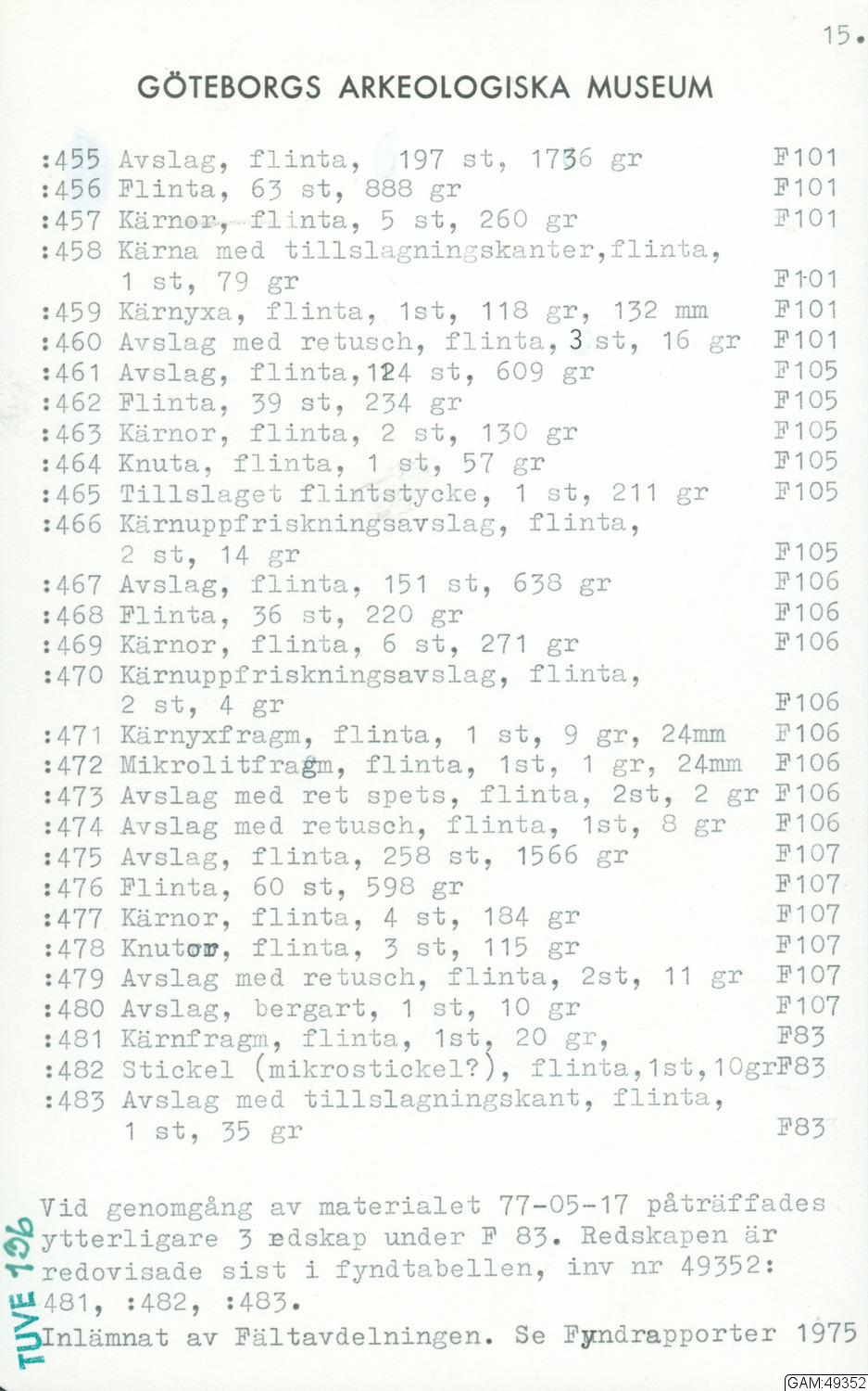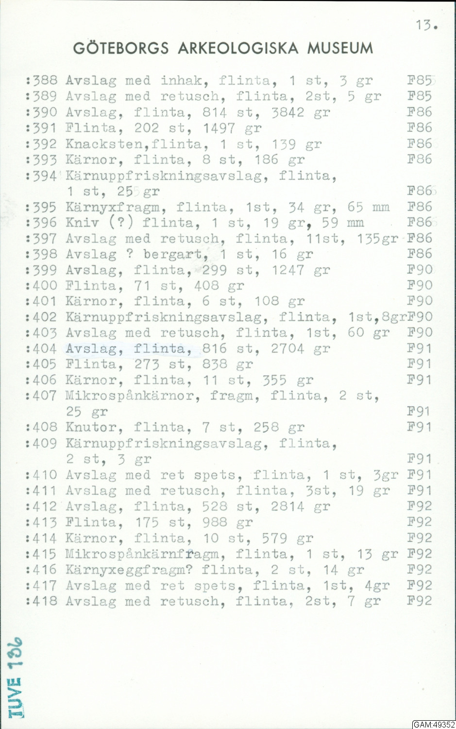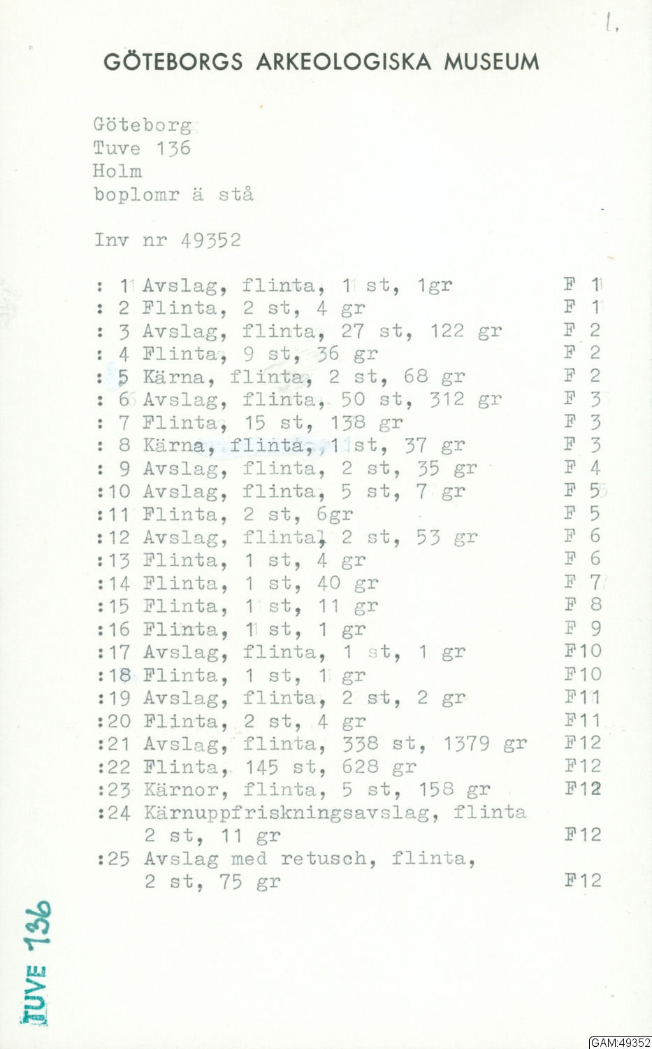 GAM:49352 :: utgrävningar, utgrävning, provundersökt