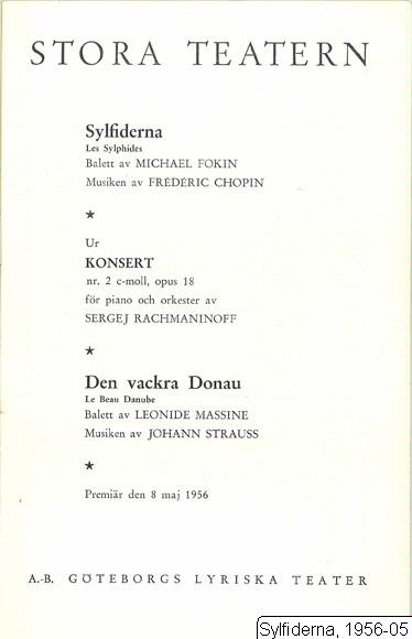 Eklund, Torgny [kusk: Petruschka]; Gabay, Eugène [en ambassadör: Kärleksprovet. dans: Concerto. Petruschka: Petruschka]; Gabay, Nina [Chung-Yang: Kärleksprovet. dans: Concerto. ballerinan: Petruschka]; Jensen, Gerda, dansare [Chung-Yangs vänninna: Kärleksprovet. dans: Concerto. amma: Petruschka]; Johansson, Gunnel, skådespelare [Chung-Yangs vänninna: Kärleksprovet. dans: Concerto. amma: Petruschka]; Kjölaas, Hans [en mandaring, Chung-Yangs far: Kärleksprovet. dans: Concerto. kusk: Petruschka]; Larsson, Barbro, 1931- [soldat: Kärleksprovet]; Larsson, Gerd [soldat: Kärleksprovet. amma: Petruschka]; Lazar, Janos [dans: Concerto. kusk: Petruschka]; Magnusson, Birgitta [dans: Concerto. amma: Petruschka]; Merwün, Elsa [Chung-Yangs vänninna: Kärleksprovet. dans: Concerto. amma: Petruschka]; Niebuhr, Lotte [en fjäril: Kärleksprovet. dans: Concerto. amma: Petruschka]; Olson, Rune [charlatanen: Petruschka]; Pettersson, Elsie-Marie [Chung-Yangs vänninna: Kärleksprovet. dans: Concerto. amma: Petruschka]; Sjöstrand, Hervor [soldat: Kärleksprovet. amma: Petruschka]; Söderman, Eivor [Chung-Yangs vänninna: Kärleksprovet. dans: Concerto. gatudansör, zigenerska: Pet]; Söderman, Jackie [en yngling: Kärleksprovet. dans: Concerto. moren: Petruschka]; Wald, Ina [soldat: Kärleksprovet. dans: Concerto. gatudansör, zigenerska: Petruschka]; Wallman, Lillwi [Chung-Yangs vänninna: Kärleksprovet. dans: Concerto. amma: Petruschka]; Weng, Egon [ambassadörens minister: Kärleksprovet. dans: Concerto. kusk: Petruschka]; Winquist, Nils [kusk: Petruschka]; Zachrisson, Thor [ambassadörens minister: Kärleksprovet. dans: Concerto. kusk: Petruschka]