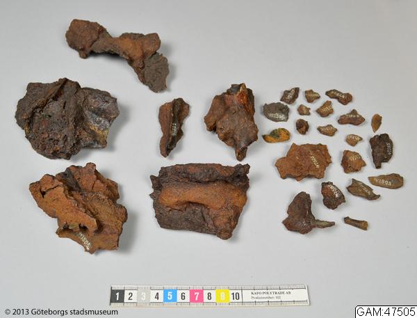 Sköldbuckla av järn, fragment. (enligt katalogkort)