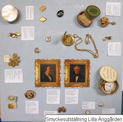 Föremålen i montern har legat gömda i ett stängt bankfack i över 20 år. Inuti fanns ett tjugotal tidstypiska och för tiden 1850-1890 mycket moderiktiga smycken, exempelvis berlocker. Porträtten av Arvid och Jeanna är målade av Geskel Saloman, känd konstnär i Göteborg vid denna tid och grundare av Göteborgs Musei Ritskola.