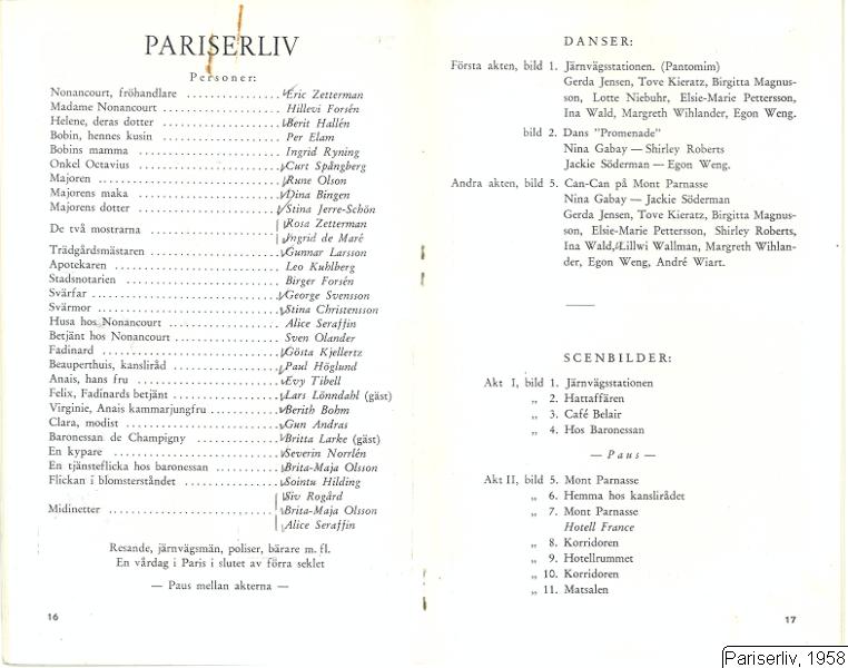 Pariserliv, 1958 :: föreställning