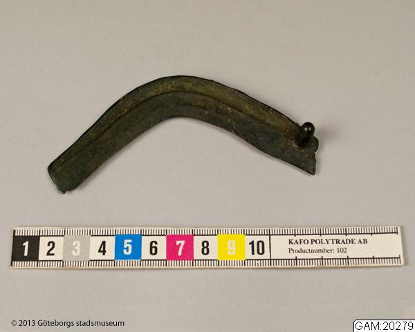 - "Skära av brons med tapp till skaftets fästande, spetsen avbruten, 11.1 cm lång (gl n:r 249). Fyndort okänd. Österrike-Ungern."