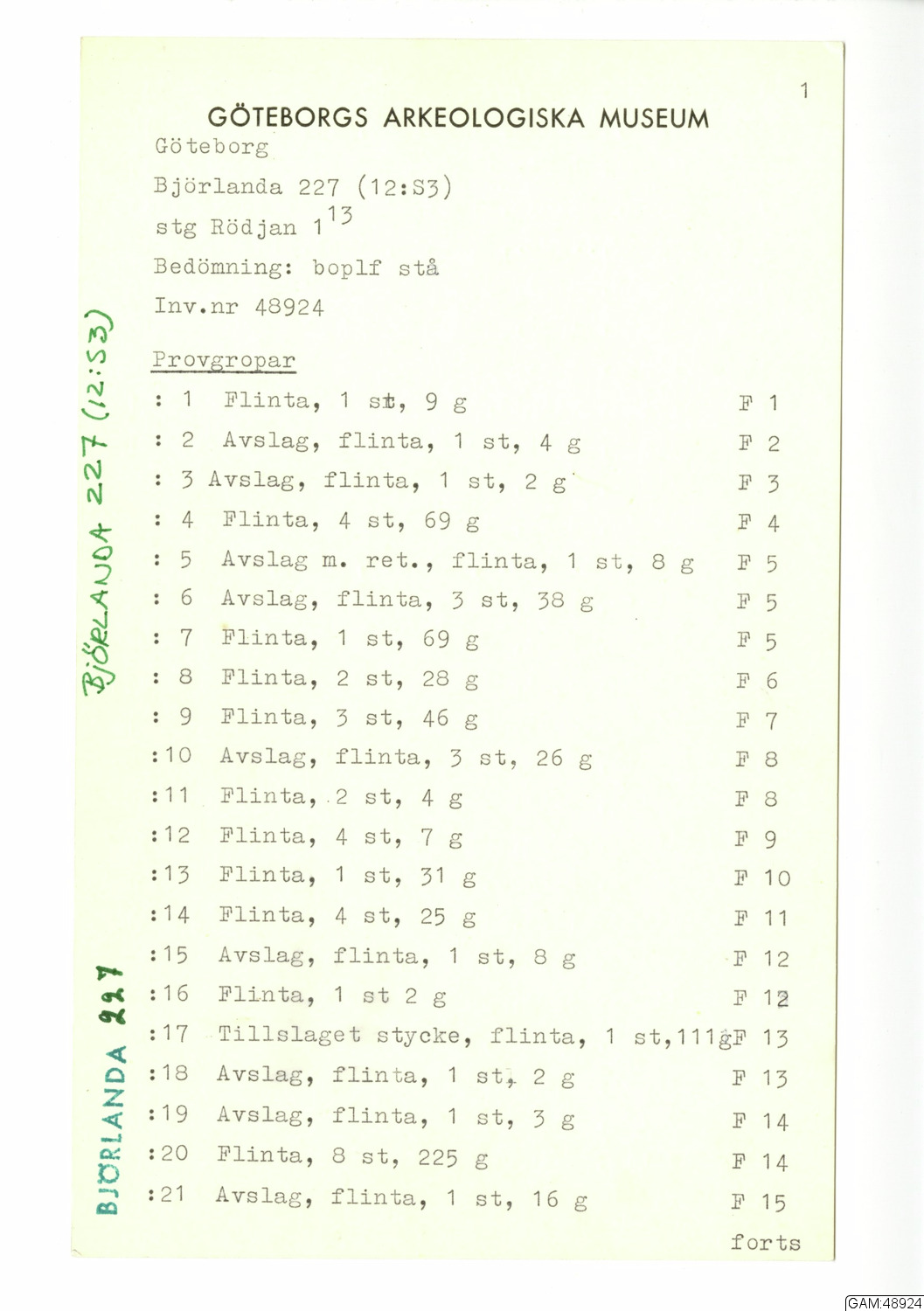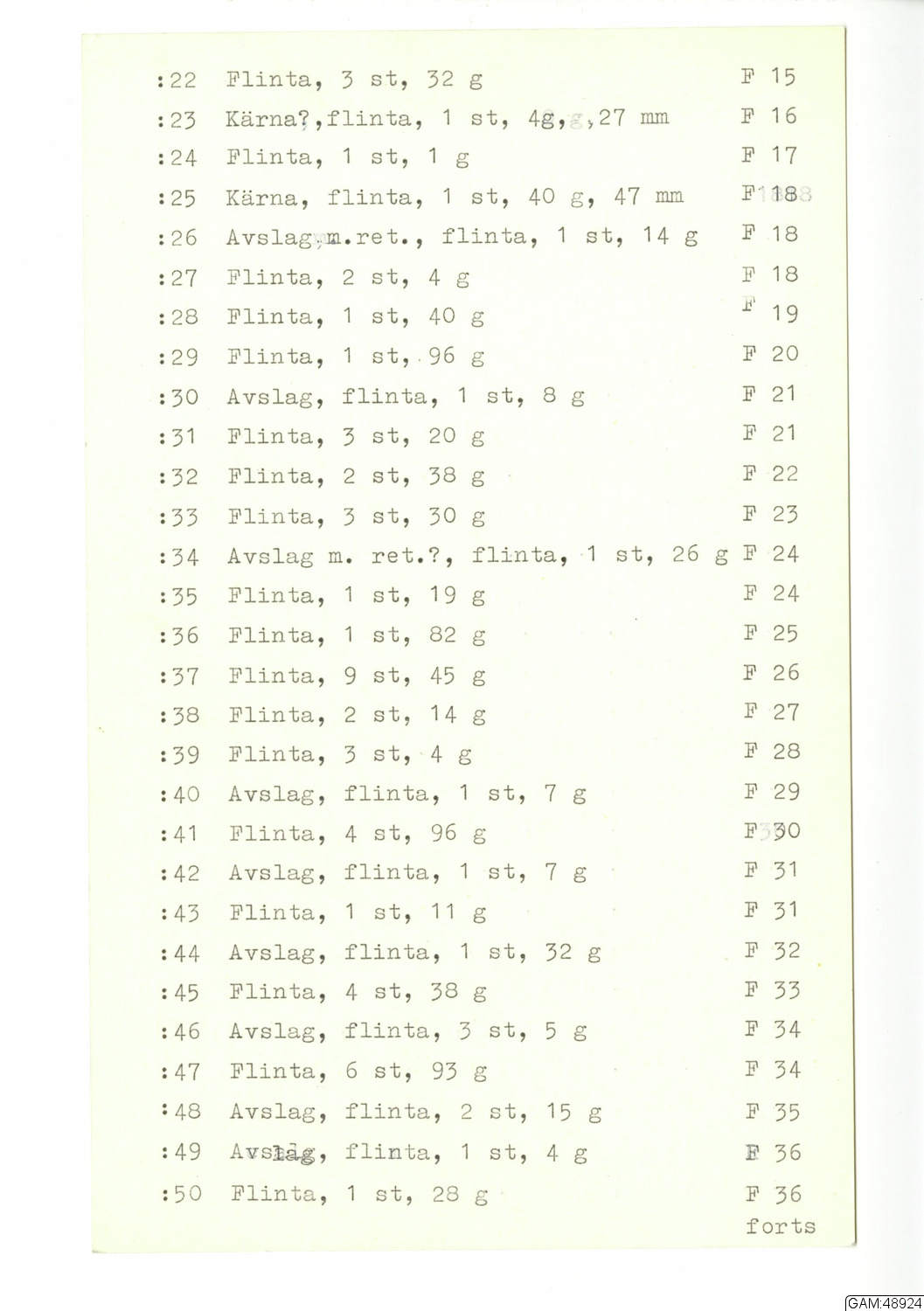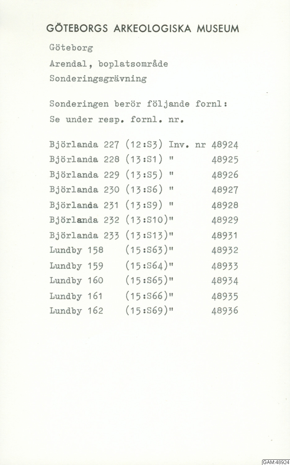 GAM:48924 :: utgrävningar, utgrävning, undersökning, slutundersökning [fältark]
