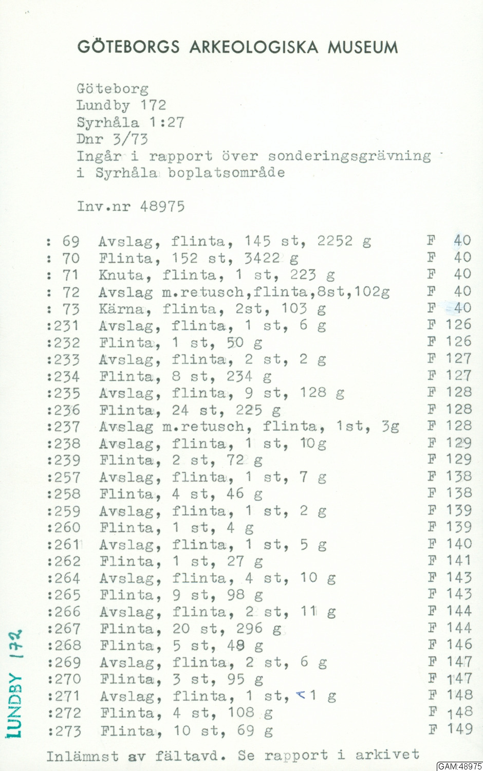 GAM:48975 :: utgrävningar, utgrävning, sonderingsgrävning
