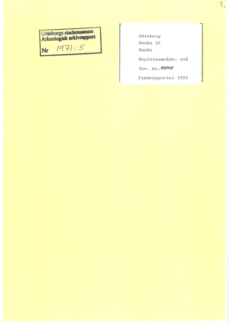 Arkeologisk rapport 1971:5; 16:S 17 Backa Göteborg;
