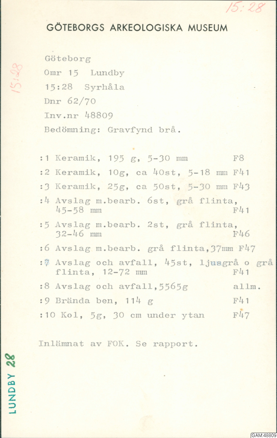 utgrävningar, utgrävning, slutundersökning [fältark], brända ben