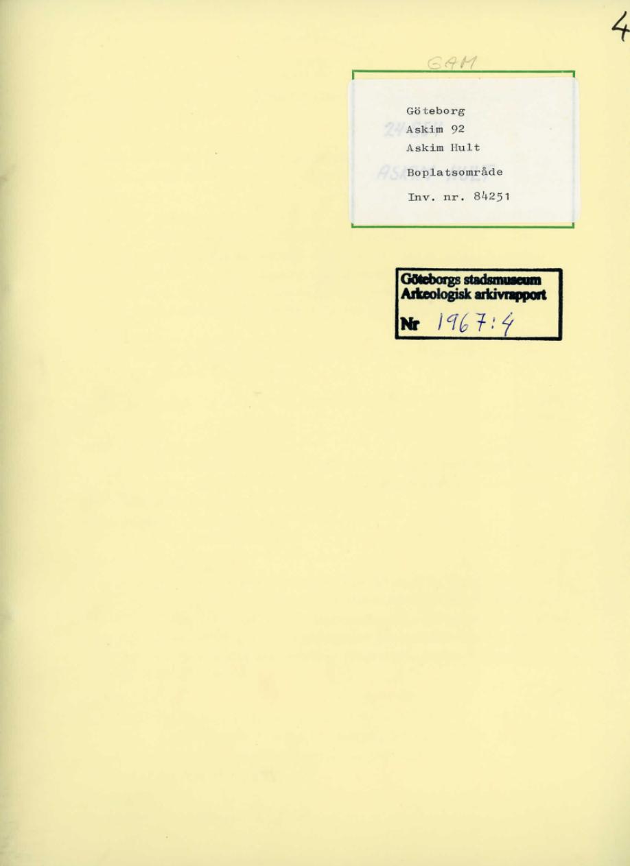 Arkeologisk rapport 1967:4; Rapport över undersökning av boplatsområdet 24:S 54; i Askims socken Västergötland
