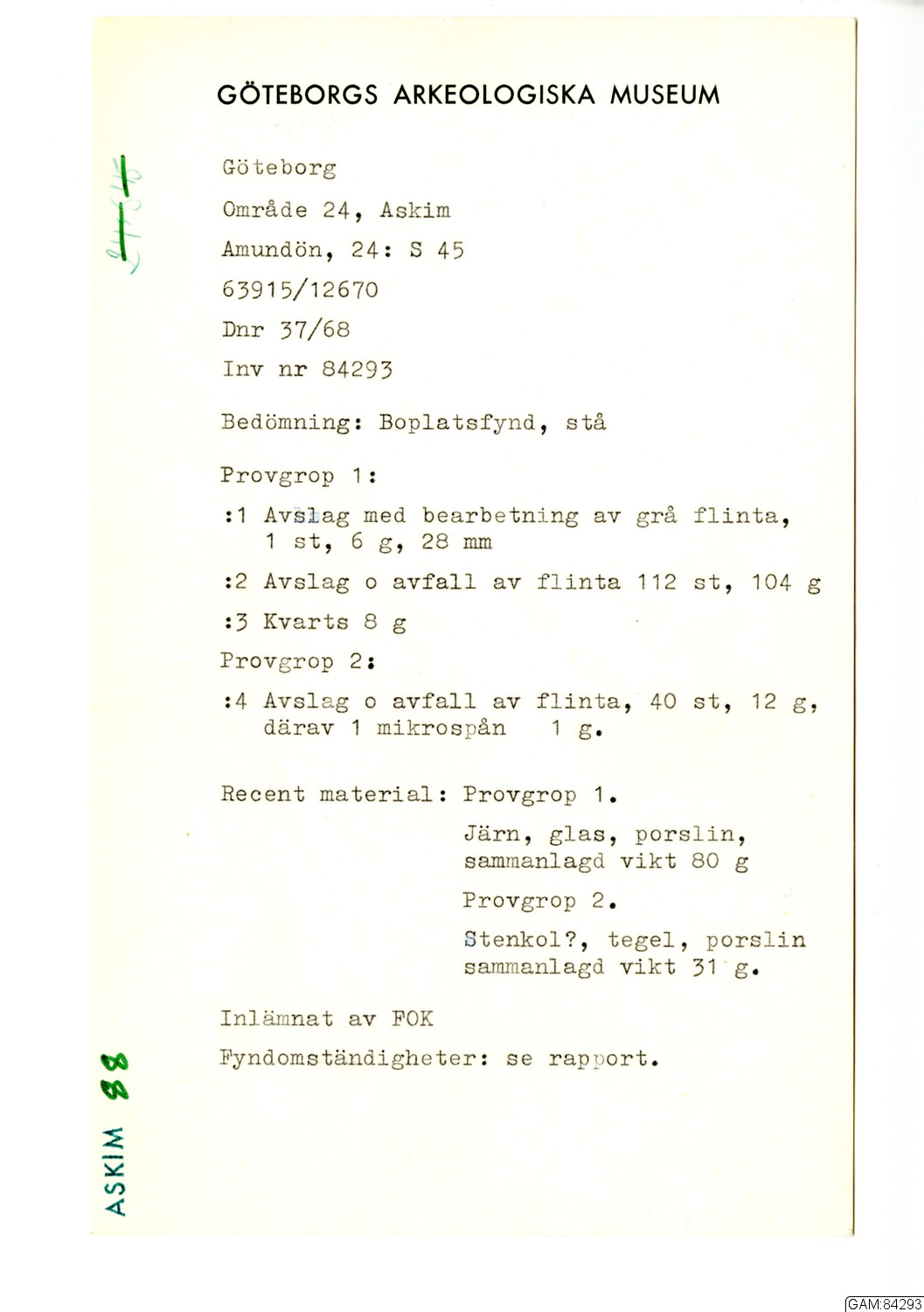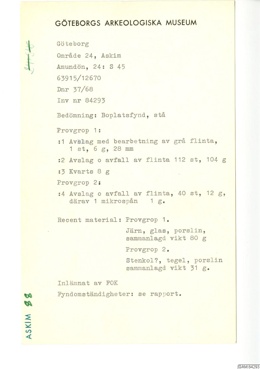GAM:84293 :: utgrävningar, utgrävning, undersökning, förundersökning [fältark]