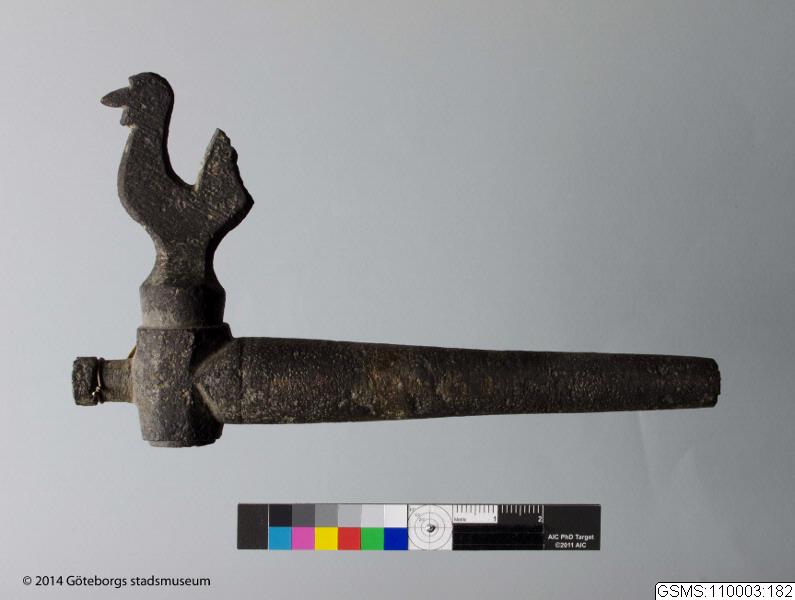 Kran af messing. L: 13.7 cm, B: 7.9 cm. [ur katalogkort]