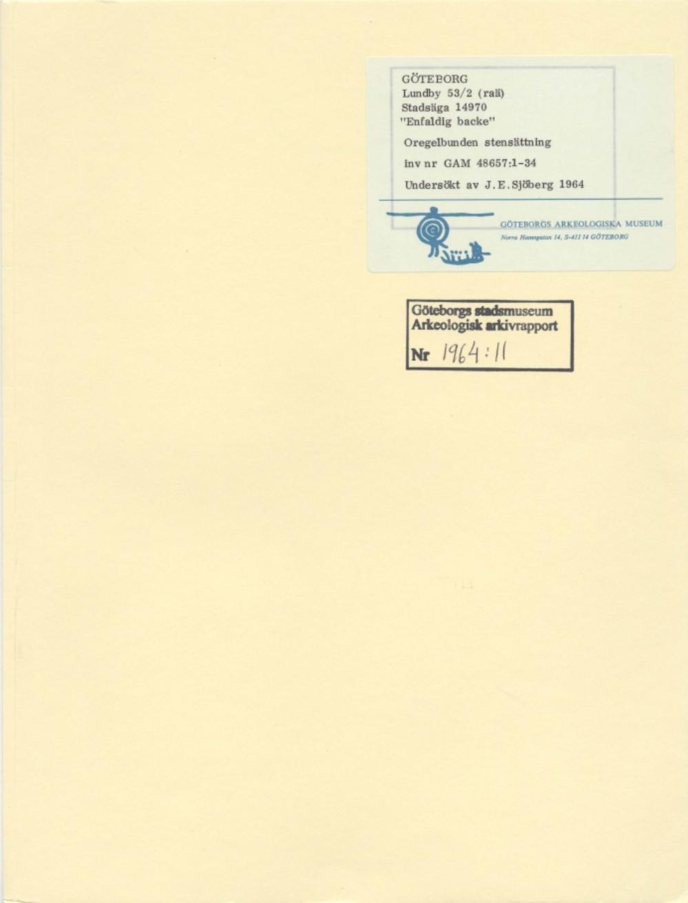 Arkeologisk rapport 1964:11