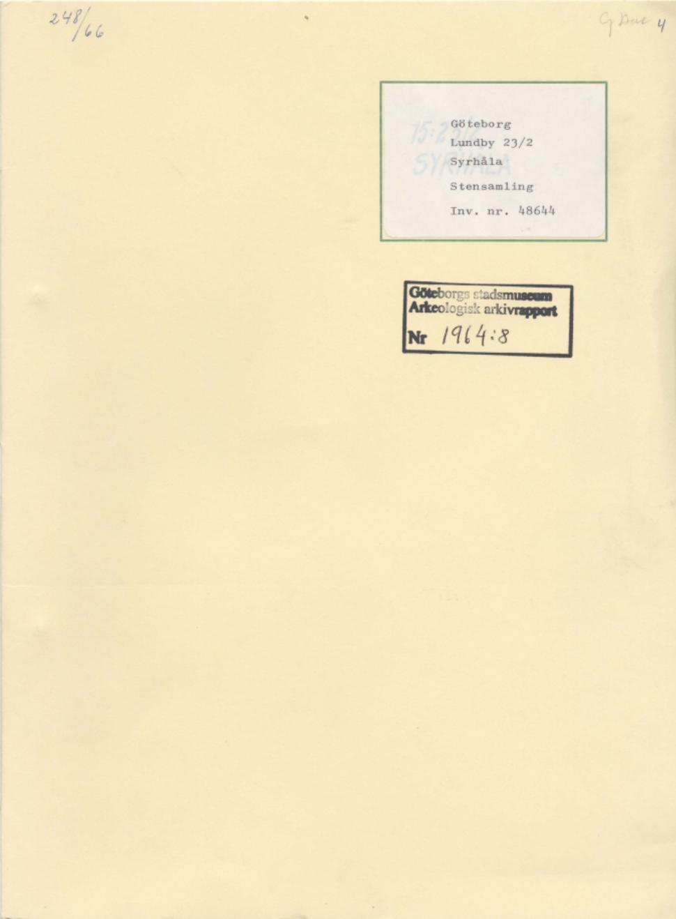 Arkeologisk rapport 1964:8;