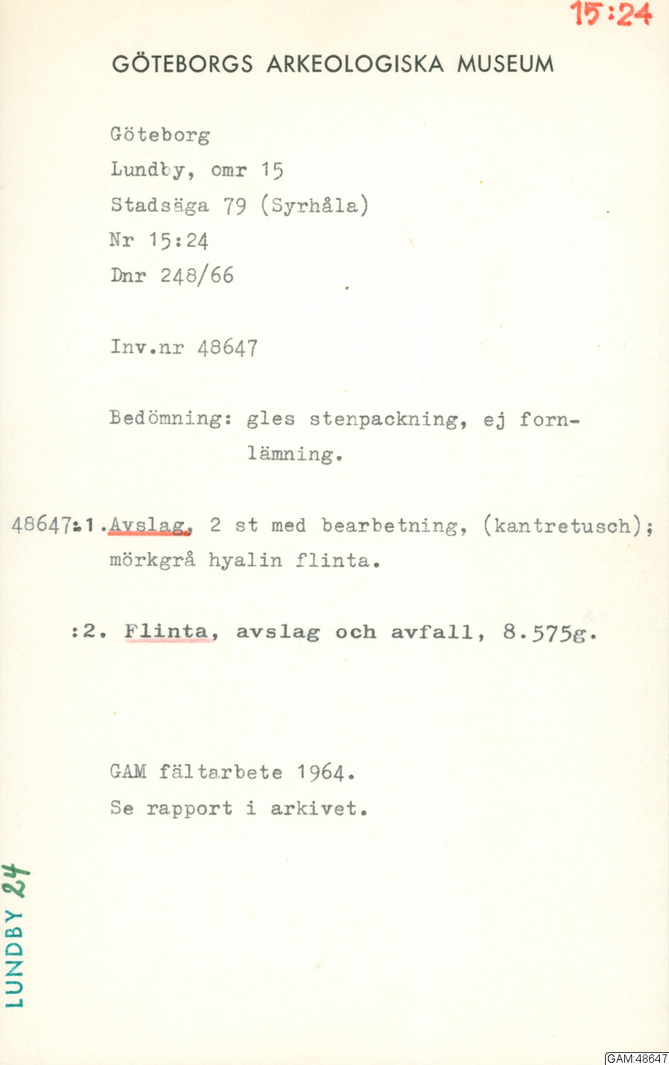 GAM:48647 :: utgrävningar, utgrävning, undersökning, slutundersökning [fältark]