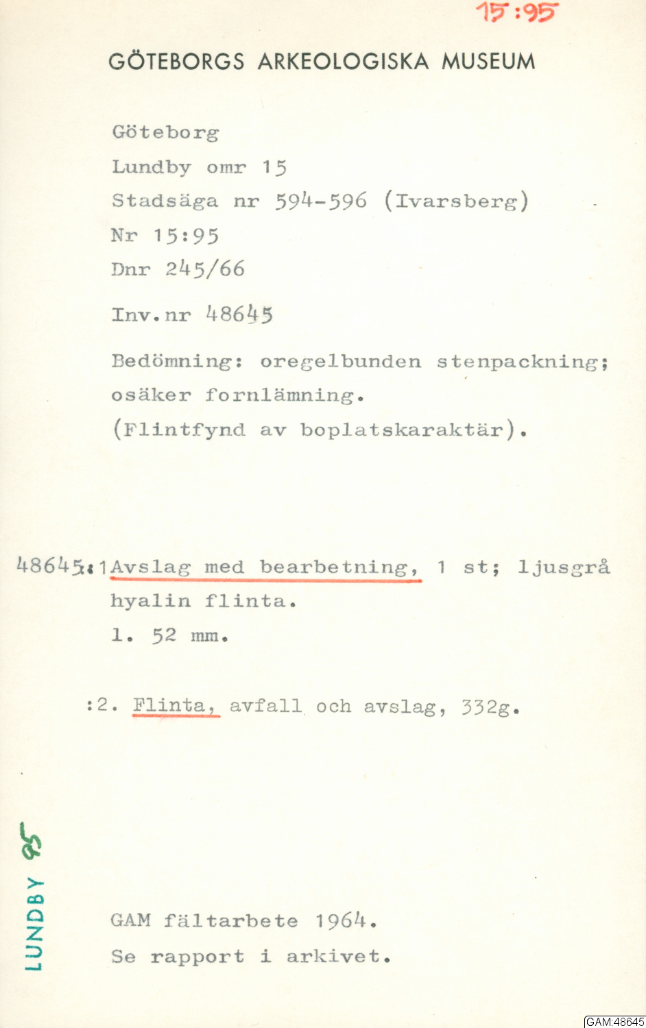 GAM:48645 :: utgrävningar, utgrävning, undersökning