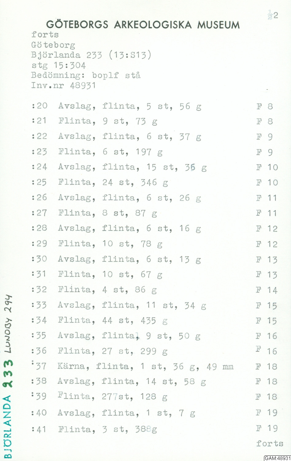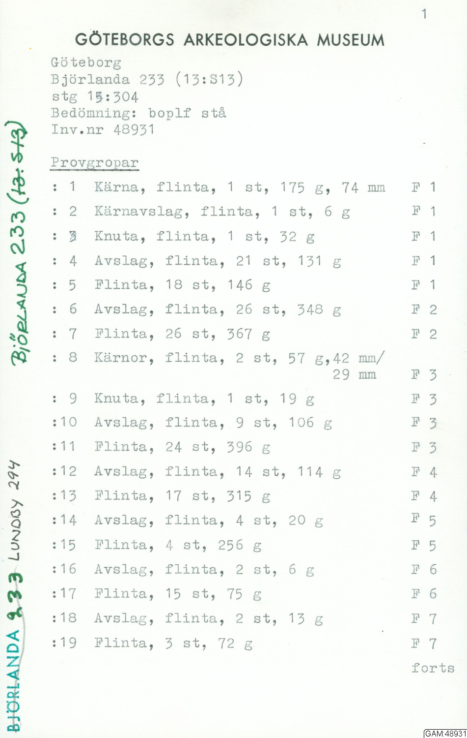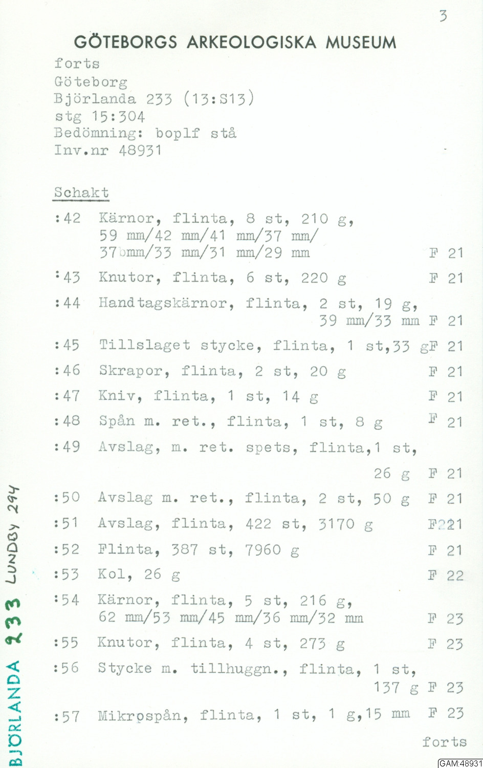 GAM:48931 :: utgrävningar, utgrävning, sonderingsgrävning