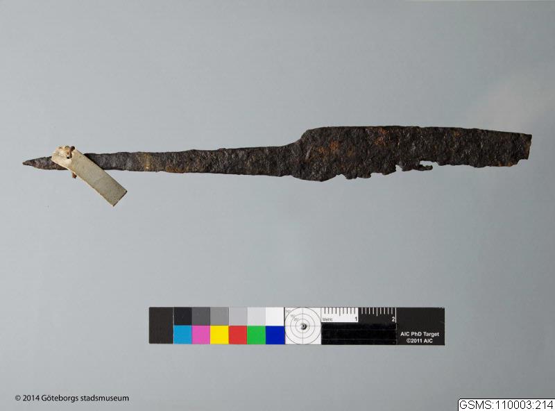 Knif af smitt järn. Jmfr. 1917 No 929. L: 13.2 cm, B: 1.5 cm. [enl katalogkort]