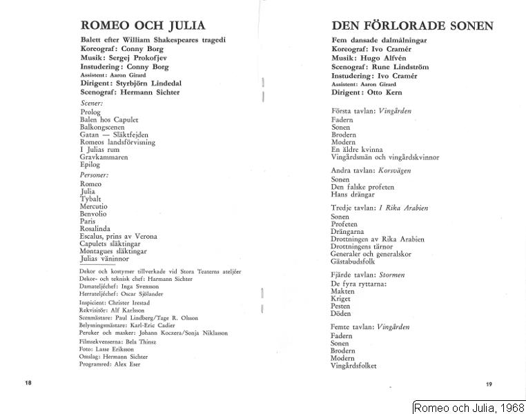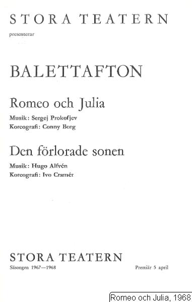 - Uppsatt tillsammans med Conny Borgs balett Romeo och Julia. Spelad 10 ggr.