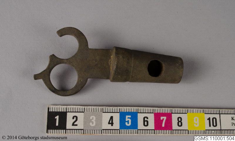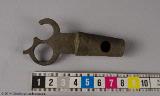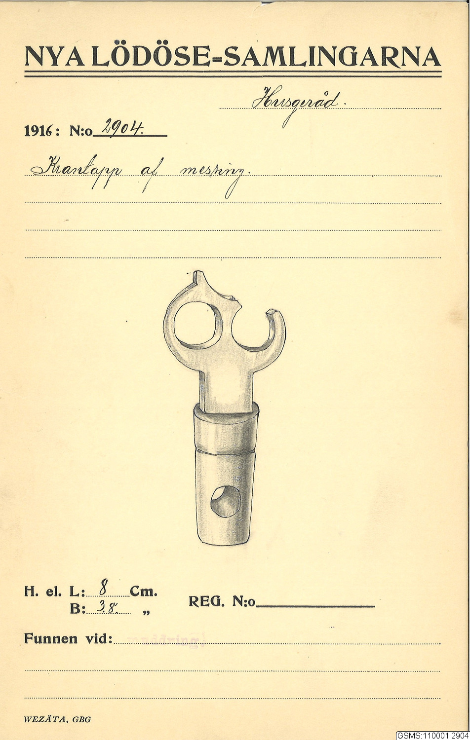 Krantapp af messing. L: 8 cm, B: 3.8 cm. [enl katalogkort]