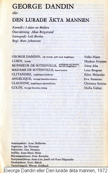 George Dandin eller Den lurade äkta mannen, 1972 :: föreställning