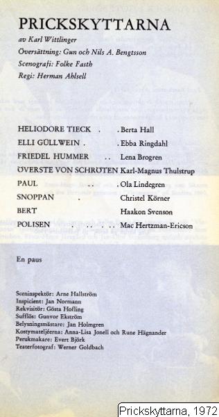 Prickskyttarna, 1972 :: föreställning