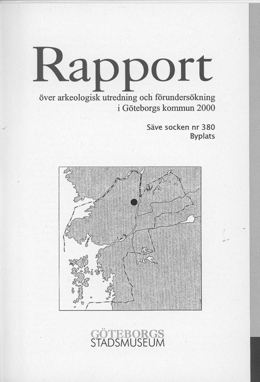 Rapport över arkeologisk utredning och förundersökning i Göteborgs kommun 2000; Säve socken nr 380;