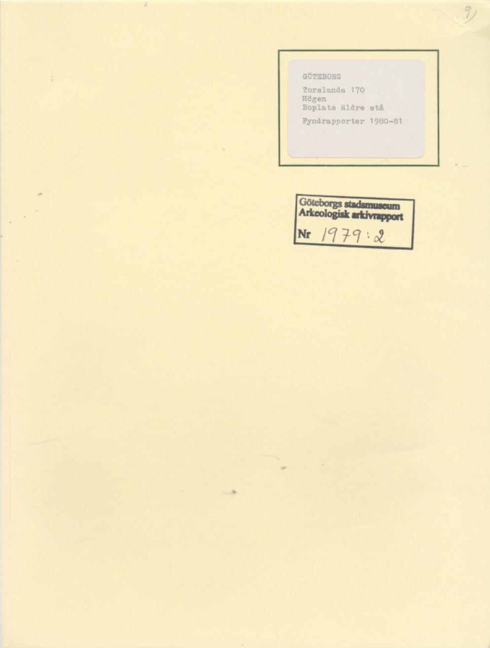 Arkeologisk rapport 1979:2; Torslanda 170, Högen, boplats, äldre stenålder