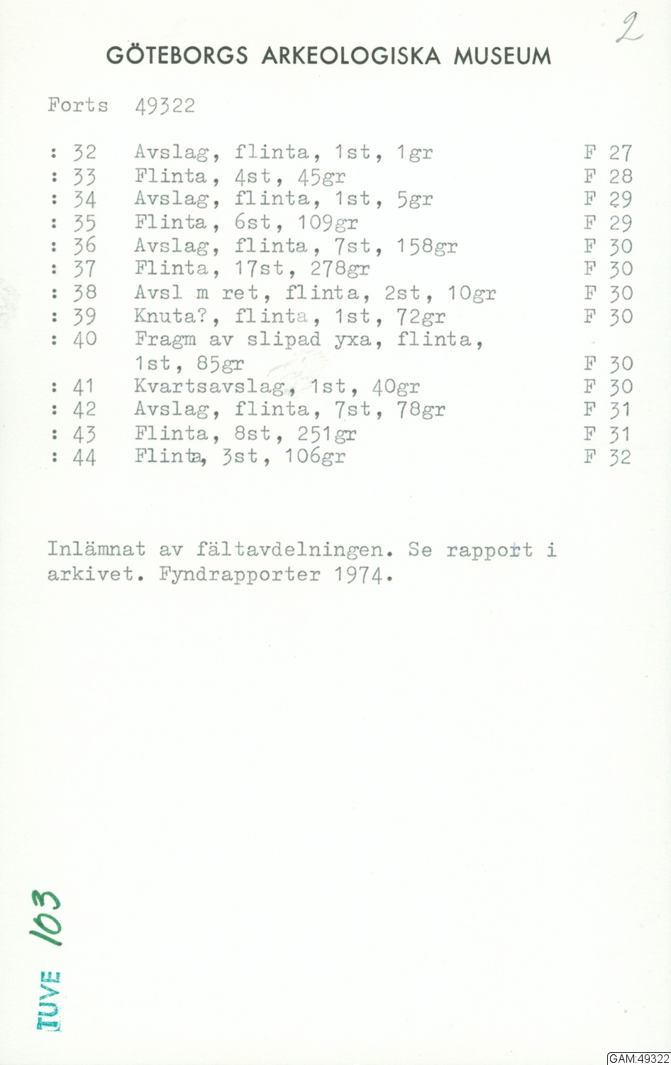 Fyndrapporter 1974