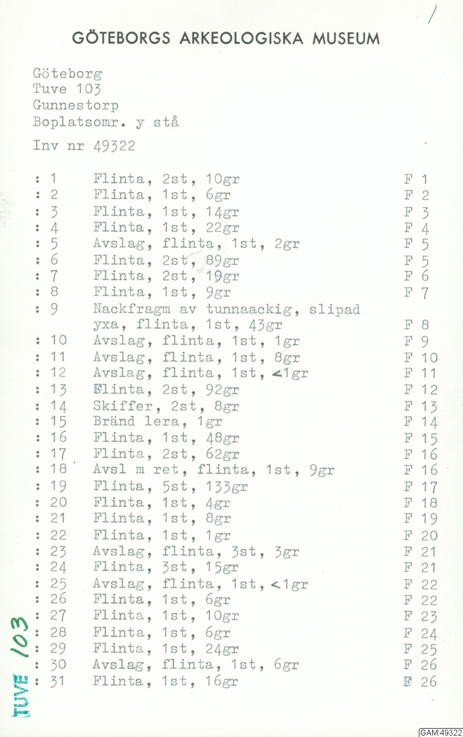 GAM:49322 :: utgrävningar, utgrävning, provundersökning, förundersökning [fältark]
