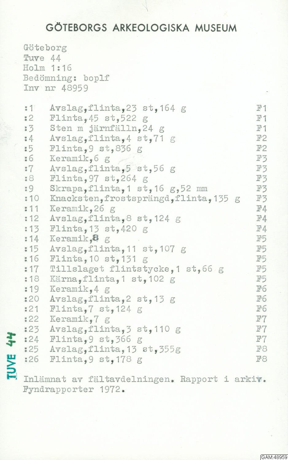 GAM:48959 :: utgrävningar, utgrävning, provundersökning, förundersökning [fältark]