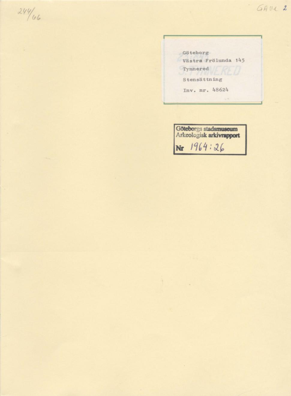 Arkeologisk rapport 1964:26 :: rapport, arkeologisk rapport, arkeologisk arkivrapport