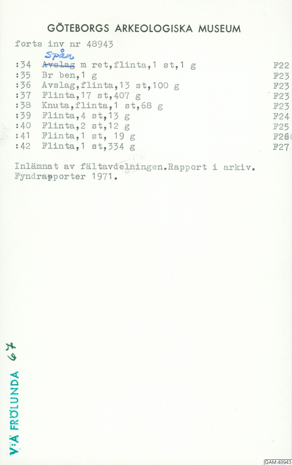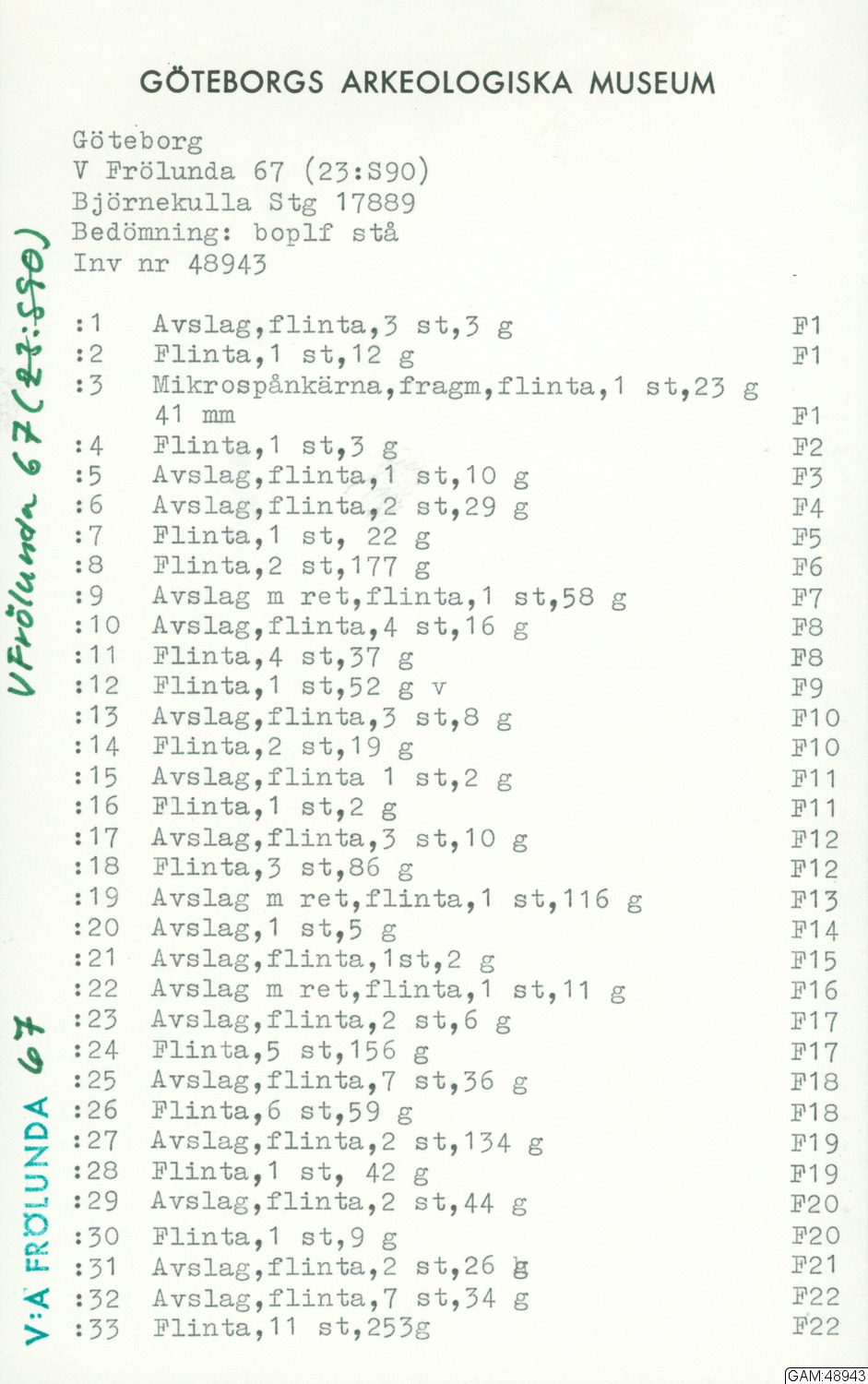 GAM:48943 :: utgrävningar, utgrävning, provgrävning, slutundersökning [fältark]