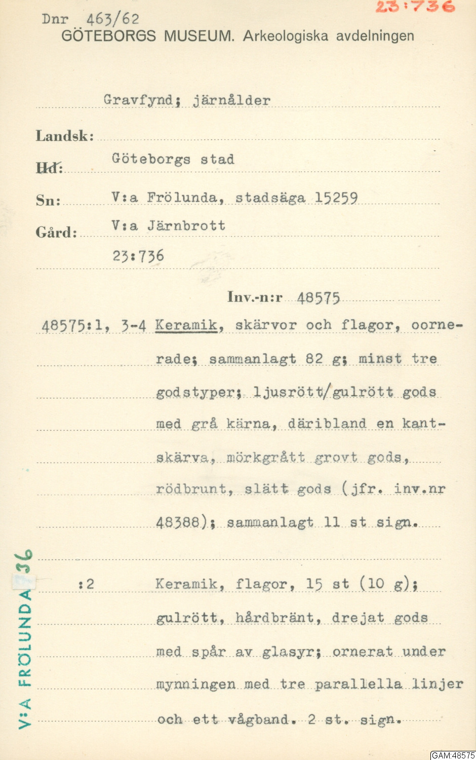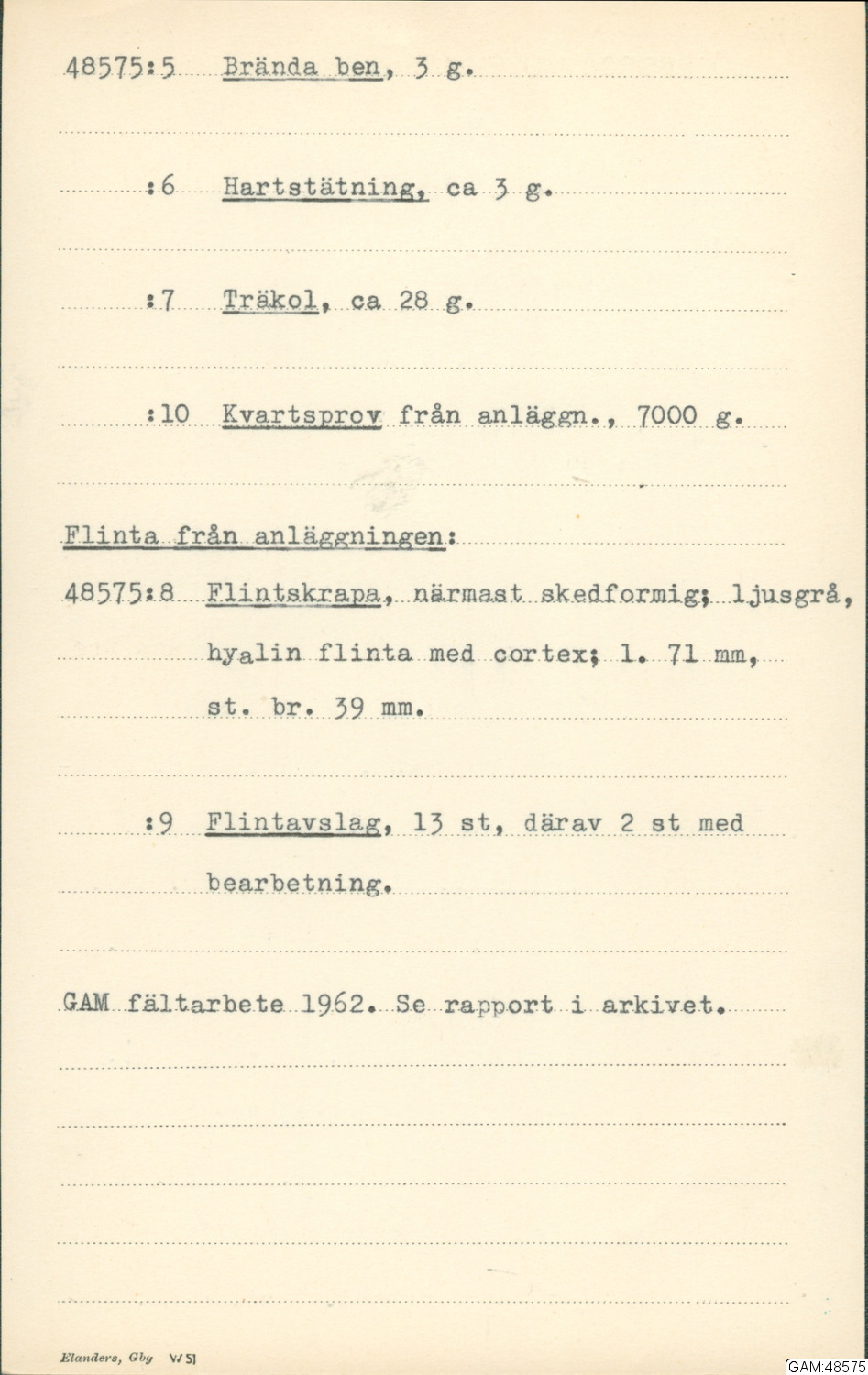 GAM:48575 :: utgrävningar, utgrävning, slutundersökning [fältark]